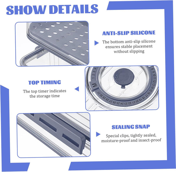 Notre boîte préserve la fraîcheur des aliments mieux que les autres produits grâce à son système innovant de drainage et son enregistrement du temps.