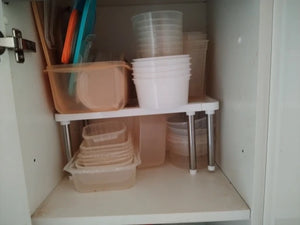 Vous manquez constamment de place pour vos affaires ? Ce support de rangement extensible crée un espace vertical supplémentaire, vous permettant de stocker plus efficacement vos articles ménagers.